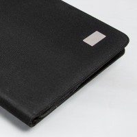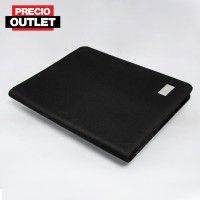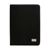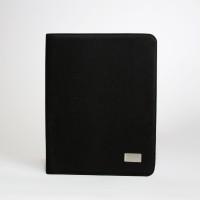 Carpeta con cubierta exterior de poliéster 300D e interior de PU. Placa metálica para grabado y cierre. Compartimentos para tarjetas, sujetador de bolígrafo bolígrafo, porta celular. Cintas elásticas para sujetar diversos artículos y soporte con velcro para tablet o celular. Bloc A4 con 20 hojas rayadas.